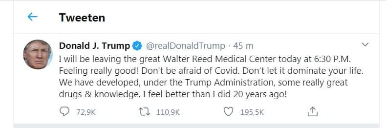 “Unë do të largohem nga Qendra e madhe Mjekësore Walter Reed sot në 6:30 pasdite. Ndihem vërtet mirë!
