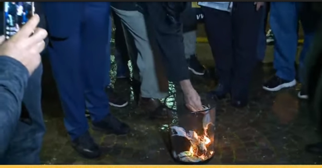 Personat e pranishem kane hedhur maskat e tyre ne nje kosh me flake duke I djegur ne shenje proteste ndaj urdherit te qeverise.