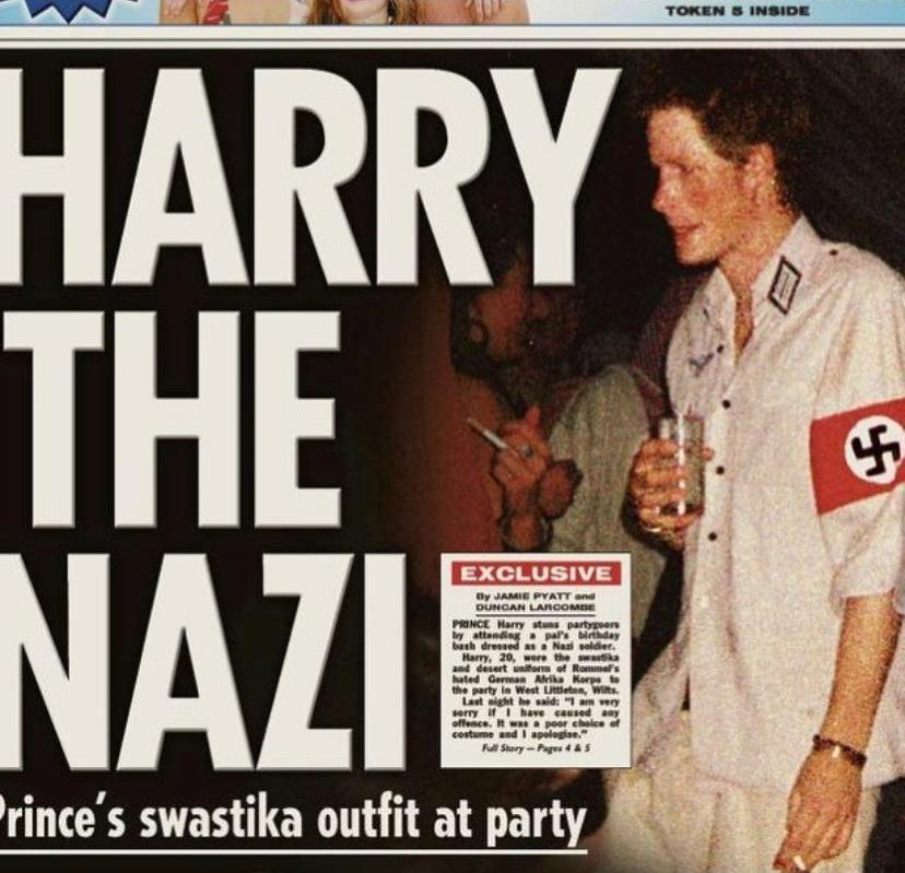 Harry i referohet dikujt në familjen e tij duke bërë një koment privat mbi ngjyrën e lëkurës së fëmijëve të tij të ardhshëm. Më duket se Harry ka veshur një svastikë të neveritshme dhe antisemitike. Me kete veshje te Harry dukej se mbështeste një regjim të tmerrshëm, që vrau 6 milion burra hebrenj, gra dhe fëmijë. Rreth 1,500,000 fëmijë hebrenj u vranë nga nazistët. Për hebrenjtë dhe viktimat e tjera të Gjermanisë naziste, ai u bë një simbol i antisemitizmit dhe terrorit të plotë. Në shumë vende perëndimore, svastika tani shihet si një simbol i supremacizmit dhe kërcënimit racor për shkak të shoqërimit të saj me nazizmin. Në 1941, filluan dëbimet e para të hebrenjve nga Gjermania në getot dhe kampet e përqendrimit në lindje. Nazistët (të cilët e mbanin këtë svastikë me krenari) vendosën getot në fillim të luftës, në to, fëmijët hebrenj vdiqën nga uria dhe ekspozimi, si dhe mungesa e veshjeve dhe strehimit. Autoritetet gjermane ishin indiferentë ndaj kësaj vdekjeje masive, sepse ata i konsideronin shumicën e fëmijëve geto më të vegjël si joproduktivë dhe kështu “ngrënës të padobishëm”. Kampi i përqendrimit të fëmijëve Sisak drejtohej nga njerëz që mbanin Swastika, një deklaratë nga një sekretar i Kryqit të Kuq – u dëgjuan thirrjet e trishtuara të fëmijëve, në dyshemenë e zhveshur, katërqind fëmijë, nga disa javë deri në dhjetë vjeç. Fëmijët qanin në mënyrë të pashmangshme dhe po thërrisnin nënat e tyre, të cilat ishin vetëm disa hapa larg fëmijëve, por kriminelët fashistë nuk i lanë nënat t’u afroheshin fëmijëve të tyre. Fëmijët e moshuar na tregojnë me lot, se nuk mund të qetësojnë të vegjlit. Fëmijët, madje edhe ata që ishin vetëm disa muajsh, u desh të shtriheshin në dysheme vetëm me një shtresë të hollë kashte pa asnjë rrobë ose batanije. Spitali, në një shkollë të vogël në Sisakun e Vjetër, nuk kishte shtretër kështu që fëmijët ishin shtrirë në dysheme në kashtë të kontaminuar të veshur me gjak dhe jashtëqitje dhe të mbuluar me tufa mizash. Një simbol i tillë argëtues për tu veshur për një aheng te princit Harry.