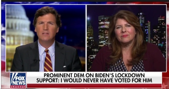 CARLSON: Një person që me sa duket nuk ka frikë të flasë është Naomi Wolf e cila padyshim po humbet miqtë duke u shfaqur në këtë shfaqje sonte. Ajo është autore e “Fundi i Amerikës: Letër paralajmëruese për një Patriot të Ri” dhe CEO i DailyClout. Ajo na bashkohet sonte.