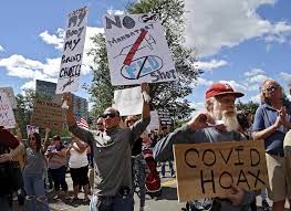 Qindra njerëz u mblodhën pranë sallës së qytetit të NewYork për të marrë pjesë në demonstratë “Liria Mjekësore e Popullit ” dhe protestimi i pasaportave shëndetësore pasi kryebashkiaku i New Yorkut, Bill de Blasio njoftoi se vaksinimi i detyrueshëm do të merrte formë të prerë nga 16 Gushti .