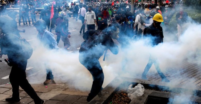Policia tajlandeze përdori ujë, gaz lotsjellës dhe plumba gome për të zmbrapsur turmat që marshuan drejt një baze ushtarake ku Kryeministri Prayuth Chan-ocha ka rezidencën për të kërkuar dorëheqjen e tij.