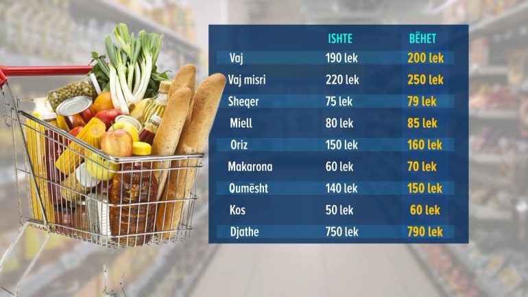 Një sërë produktesh të shportës ushqimore kanë shënuar këtë muaj rritje të çmimit me disa lekë. Vaji, mielli, orizi, sheqeri apo edhe qumështi dhe nënproduktet e tij në markete e tregje gjenden me çmim 10 deri ne 20 lekë më shumë.