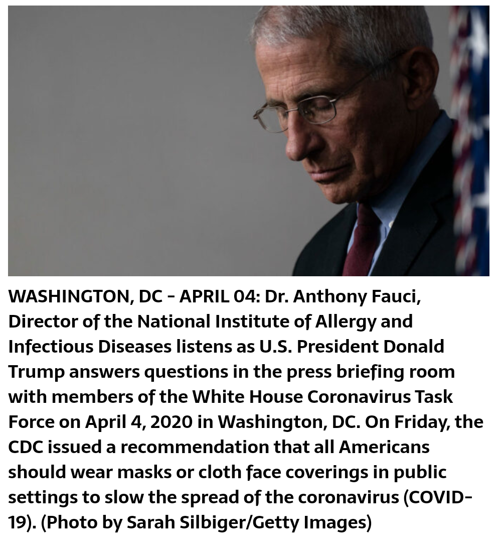 Së pari, Fauci i tha Trump se virusi ishte “asgjë për t’u shqetësuar”. Pastaj ai e ktheu kursin dhe paralajmëroi Trump Covid-19 do të shkatërronte plotësisht vendin nëse nuk ndërmerren hapa të ngjashëm me ligjin ushtarak për të frenuar përhapjen.