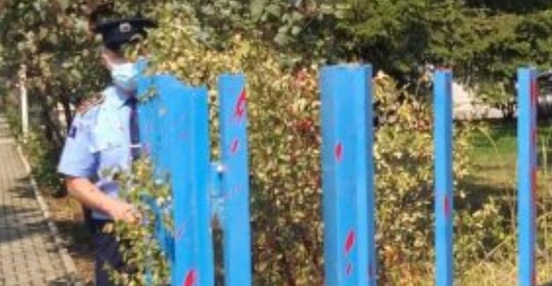 Gjatë protestës, disa nga pjesëmarrësit u hodhën ngjyrë të kuqe policëve që po përkujdeseshin për sigurinë në hyrjen e oborrit të stacionit policor, raporton Gazeta Express.